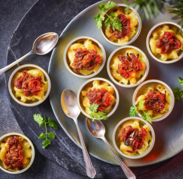 Tesco has also created the perfect cheesy canape with mac and cheese bites, infused with mustard and topped with a pulled Applewood-smoked beef in a sweet BBQ sauce.